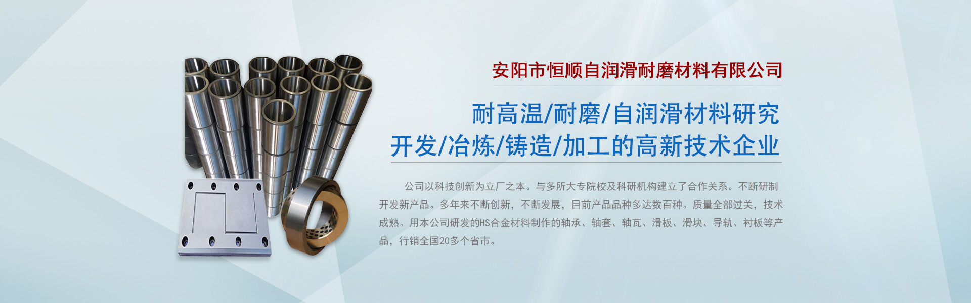 銆銆瀹夐槼甯?jìng)鎭挋屮檱鼎婊戣愮(鏉愭枡鏈夐檺鍏徃錛屾槸涓撻棬浠庝簨楂樼~鍚堥噾杞存壙,楂樻俯鑰愮(杞存壙,鑷鼎婊戣醬鎵跨瓑鑰愰珮娓╋紝鑰愮(錛岃嚜娑︽粦鏉愭枡浜у搧鐮旂┒銆佸紑鍙戙佸喍鐐箋侀摳閫犮佸姞宸ョ殑楂樻柊鎶鏈紒涓氥?br/>銆銆鍏徃浠ョ鎶鍒涙柊涓虹珛鍘備箣鏈備笌澶氭墍澶т笓闄㈡牎鍙?qiáng)绉戠爺鏈烘瀯寰忕珛浜?jiǎn)鍚堜綔鍏崇郴銆備笉鏂爺鍒跺紑鍙戞柊浜у搧銆傚騫存潵涓嶆柇鍒涙柊錛屼笉鏂彂灞曪紝鐩墠浜у搧鍝佺澶氳揪鏁扮櫨縐嶃傝川閲忚繃鍏籌紝鎶鏈垚鐔熴傜敤鏈叕鍙哥爺鍙戠殑HS鍚堥噾鏉愭枡鍒朵綔鐨勮醬鎵褲佽醬濂椼佽醬鐡︺佹粦鏉褲佹粦鍧椼佸杞ㄣ佽‖鏉跨瓑浜у搧錛岃閿20澶氫釜鐪佸競(jìng)銆傞傜敤鑼冨洿閬嶅強(qiáng)鍐墮噾銆佸緩鏉愩佺熆灞便佹満姊板埗閫犮佸彂鍔ㄦ満姊般侀榾闂ㄩ厤浠躲佺煶娌廣佸寲宸ャ佺漢緇囥佺叅鐭跨殑琛屼笟銆傜壒鍒湪楂樻俯銆佸灝樸侀噸杞姐佺己娌廣佺淮淇笉渚匡紝榪炵畫(huà)浣滀笟絳夋伓鍔g幆澧冩潯浠朵笅浣跨敤鍏鋒湁鏄捐憲鐨勬晥鏋?..